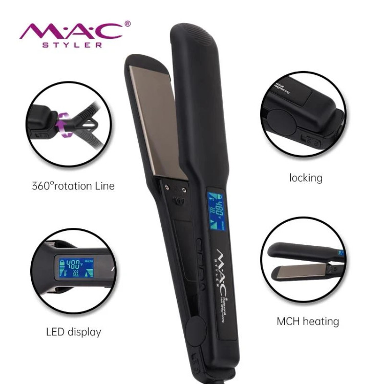 اتومو مک استایلر مدل MC-5524 ، محصولی با طراحی نوین که در عین زیبایی و کیفیت دارای تکنولوژی پیشرفته است . دمای این اتو مو قابل تنظیم بین 150 تا 280 درجه سانتی گراد است که توسط نمایشگر تعبیه شده بر روی دستگاه قابل مشاهده است . این اتوی مو دارای صفحه تمام سرامیک با تکنولوژی تولید یون است به همین خاطر کمتر به موها آسیب میرساند و نسبت به مدلهای فلزی و یا معمولی طرفدار بیشتری دارد. صفحههای سرامیکی حرارت را به طور یکنواخت توزیع کرده و تا حدودی از سوختگی موها جلوگیری میکند. با توجه به ظرفیت گرمایی بالای سرامیک ، صفحه سرامیکی گرمای خود را برای مدت طولانی حفظ میکند. همچنین موهای رنگ شده کدر نمیشوند.کفی آیونیک آن، باعث میشود که رطوبت موهای شما از دست نرود و حتی رطوبت را به موهای شما بر میگرداند و مانع از خشک شدن موهایتان میشود. اتومو مک استایلر مدل MC-5524 با صفحههای بلند و باریک هم برای صاف کردن مو و هم برای حالت دادن و فر کردن موها بکار میرود. همچنین برای اتو کشی موهای کوتاه مناسب است. اتصال کابل برق به دستگاه ، قابلیت چرخش 360 درجه دارد و استفاده از آن را ساده تر کرده است.