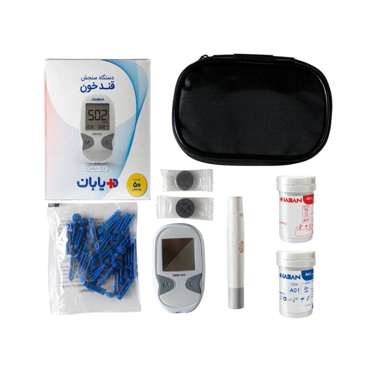 دستگاه تست قند خون دیابان مدل SMM 1000 به همراه 75 عدد نوار تست قند خون (1بسته 25 عددی به اضافه 1 بسته 50 عددی) ساخت ایران مطابق با جدیدترین تکنولوژی کشور کره جنوبی می باشد. دستگاه قندخون دیابان دارای 300 حافظه، قابلیت میانگینگیری از نتایج بوده و برای اندازهگیری قند خون تنها به 0٫5 میکرولیتر خون نیاز دارد. دستگاه دارای چهار حالت انجام تست است که خود شخص آنها را مشخص میکند. این حالتها شامل قبل از خوردن غذا، بعد از خوردن غذا، بعد از استفاده از دارو و بعد از ورزش میشوند. قابلیت جالب این دستگاه محاسبه میانگین نتایج است که میتوان تعداد روزهای اندازهگیری 3 میانگین را از 7 تا 90 روز تعیین کرد. انرژی دستگاه از دو عدد باتری سکهای CR3032 تأمین میشود. این دستگاه دارای قابلیت Auto Coding است و کد نوار تست قند خون را به شکل اتوماتیک از روی نوار تشخیص میدهد؛ بنابراین احتیاجی به واردکردن کد به شکل دستی نیست. اقلام همراه این دستگاه تست قندخون شامل 75 عدد نوار تست، قلم سوزن زن، 25 عدد سوزن، دو عدد باتری سکهای و دفترچه راهنمای فارسی و کیف نگهداری محکم میباشد.