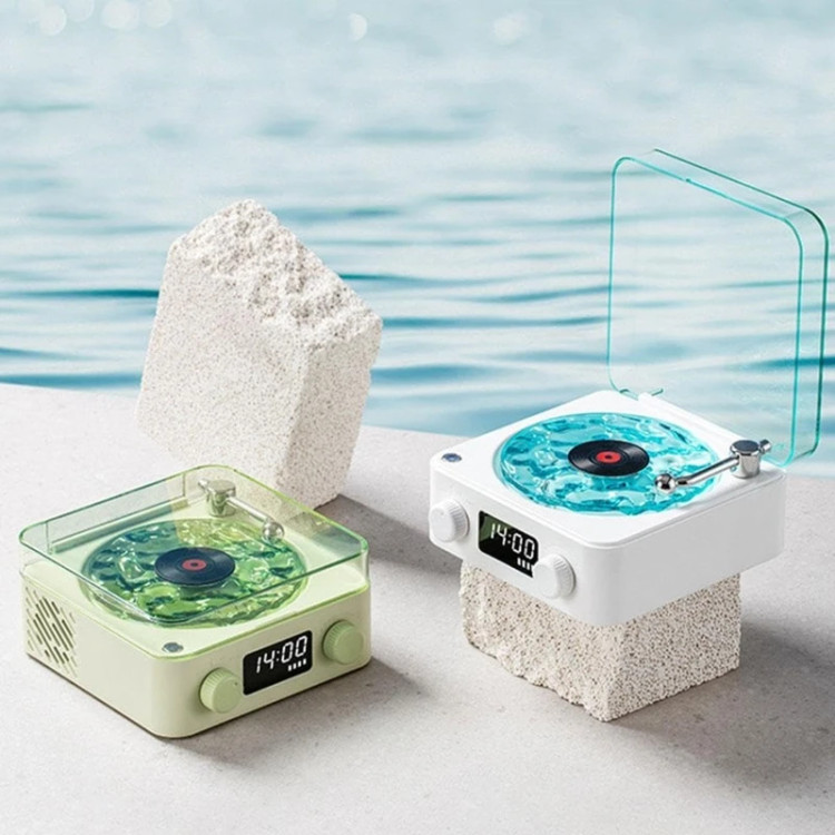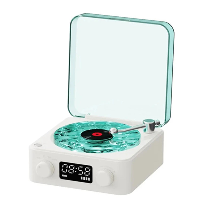 اسپیکر بلوتوثی و قابل حمل مدل طرح گرامافون T3 با قابلیت هایی که داره شما رو حیرت زده میکنه . این اسپیکر دارای نسخه بلوتوث 5 هستش و دارای رقص نور گردشی 360 درجه هستش که به چند رنگ متفاوت هم تقسیم میشه. با اسپیکری که داره شما میتونین از طریق بلوتوث و aux و یا کارت حافظه باهاش موزیک خودتون رو پخش کنید و لذت ببرید و با ساعت دیجیتالی که روی نمایشگرش داره میتونه به عنوان یک ساعت هم روی میزتون قرار بگیره شارژدهی و باتری این محصول شمارو نگران نمیکنه چون 8 تا 6 ساعت مقاوم هستش و میتونین با خیال راحت روزانه ازش استفاده کنین و زمان شارژ شدن کاملش 2 تا 3 ساعت هستش. با قابلیت صدای طبیعت که روی خود اسپیکر هست با فعال کردنش حس و حال صدای دریا با اون رقص نور هایی که اتاق رو فرا میگیره یک حس متفاوت برای شما خواهد بود.