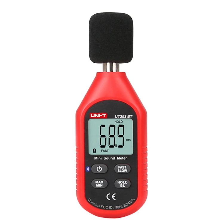 صوت سنج دیجیتالی یونیتی UNI-T UT353BT با تبدیل صدای محیط به سیگنال های الکتریکی میتواند به طور مداوم صدای محیط را کنترل کند و در صفحه نمایش با دقت بالایی نمایش دهد. دستگاه UT353BT یک صوت سنج دیجیتال مینی، مدل بلوتوث دار UT353 می باشد،که با دقت بالا dB 1.5 برای اندازه گیری صوت در محدوده 30 تا 130 دسی بل طراحی شده است. این دستگاه به طور مداوم می تواند صدای محیط را کنترل کند؛ سبک وزن، جمع و جور، ارگونومیک و کاربر پسند است. UT353BT از بلوتوث برای انتقال اطلاعات و تجزیه و تحلیل، ذخیره، از طریق APP سفارشی تلفن همراه کمپانی UNI-T با نام iENV استفاده میکند. iENV را می توان از طریق Google Play، Apple Store یا وب سایت UNI-T دریافت کنید. برای استفاده از امکان بلوتوث دستگاه حتما باید APP iENV را بسته به دستگاه خود دانلود و نصب کنید. این دستگاه جهت بررسی نویز، کنترل کیفیت، کنترل سلامت، اندازه گیری نویزهای محیطی در کارخانه ها، ترافیک، منازل، استودیوها، اتاقها ضبط، آمفی تئاترها، سالنها سینما و سایر مکان هایی که نیاز به تحلیل و بررسی و کنترل حجم و شدت صدا دارند، استفاده میشود.از استفاده از دستگاه در محیط های با رطوبت بالا، دمای زیاد، قابل اشتعال و محیط های با الکترومغناطیس قوی خودداری کنید. شرایط محیطی در راهنمای کاربری دستگاه توضیح داده شده است. دستگاه نویز دوزیمتر ارزان قیمت با کیفیت بالا UT353BT مطابق با استاندارد CE ساخته شده و از تمام فیلترهای آزمون تست CE به درستی عبور کرده است. استاندارد CE به منظور ایجاد هماهنگی اجباری در بسیاری از محصولات تجاری و صنعتی در سطح اروپا میباشد و دستگاه های دارای این استاندارد مورد تایید اتحادیه اروپا هستند. محصولاتی که واجد دریافت علامت سی.ای میشوند، میبایست از نظر سلامت، امنیت، مضر نبودن برای جسم انسان و طبیعت مورد بررسی قرار گیرند و اگر واجد این شرایط باشند قادر به دریافت این نشانه خواهند بود.