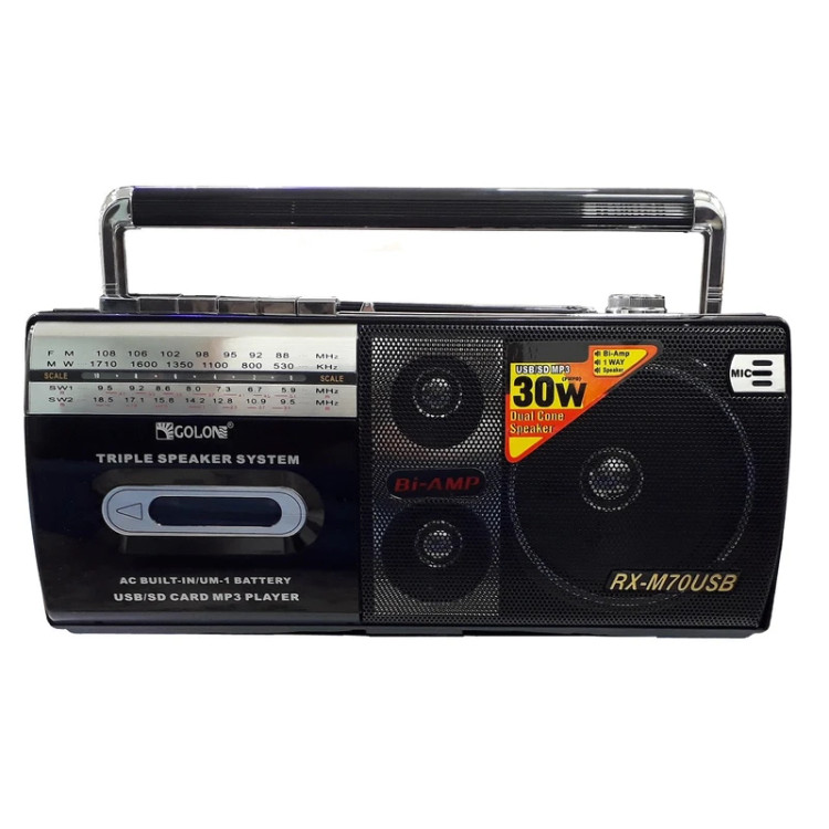 رادیوضبط و اسپیکر گولون مدل RX-M79USB به نظر می رسد با انگیزه آشناکردن نسل جدید با آنچه در گذشته مرسوم بوده طراحی و تولید شده است و همچنین افزودن امکانات روز پخش موسیقی از طریق حافظه های الکترونیکی ، ترکیب جالبی ایجاد کرده و با ایجاد پلی بین گذشته نسبتا" دور و اکنون ، هر کسی را مجذوب خود می کند هرچند نوار کاست دیگر مرسوم نبوده و بسختی در دسترس است اما برای نسل کمی قدیمی تر بسیار نوستالژیک بوده و نوار های کاست قدیمی آنها را راه می اندازد و آنها را به زمانهای دور می برد. کیفیت صدای خروجی دستگاه بدلیل استفاده از 3 بلندگو برای پخش محدوده وسیعی از فرکانس ها ، مناسب است. دستگاه به یک رادیوی 3 باند با کیفیت و حساسیت مناسب نیز تجهیز شده است که تنظیم ایستگاه آن کاملا آنالوگ بوده ، با پیچاندن یک گردانه مانند رادیو های قدیم و حرکت شاخص بر روی پنل دستگاه انجام می شود . قابل ذکر است که ولوم کوچک در زیر تنظیم کننده ایستگاه رادیو بطور نمایشی بوده و نمی چرخد و برای زیبایی افزوده شده است .تغذیه دستگاه با برق و باتری صورت می گیرد .سیم دوشاخه دستگاه در محفظه باتری قرار داده شده است.
