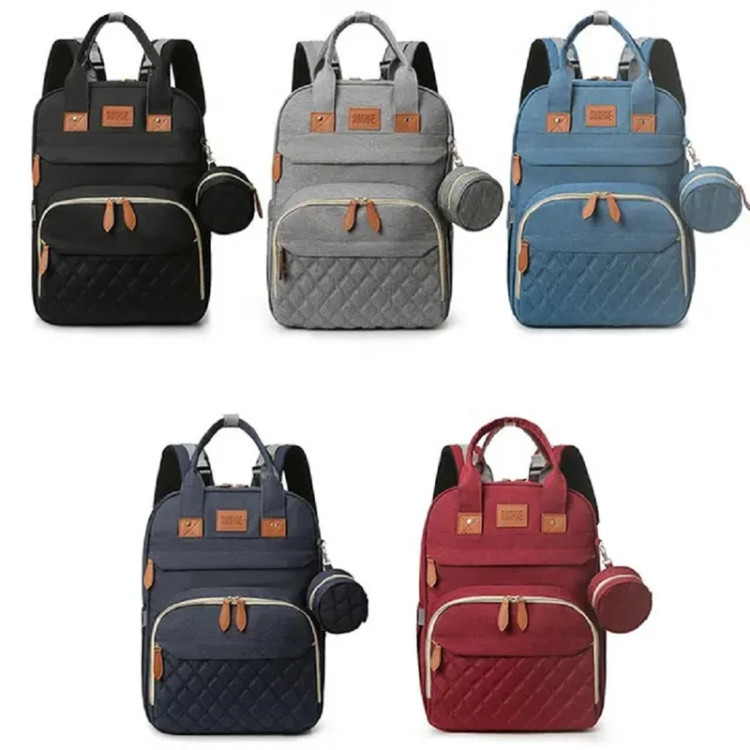 کیف و کوله پشتی لوازم کودک و نوزاد ضد آب تخت شو با پشه بند این مدل کوله به راحتی باز و بسته میشود. تعداد جیبهای بسیار زیاد که در داخل و بیرون کوله دارد نیاز شما را تا حد زیادی رفع خواهد کرد . این جیبها به اندازهای بزرگ هستند که شیشه شیر، آبمیوه و یا بطری آب در آن قرار گیرد. دو عدد جیب بیرونی در کنار کوله وجود دارد که یک جیب مخصوص استفاده از دستمال کاغذی یا دستمال مرطوب تعبیه شده است که به راحتی میتوان به دستمال دسترسی داشت. وجیب دیگر جهت قرار دادن بطری آب است.یک جیب بیرونی در پشت کوله نیز وجود دارد که کامل ضد آب میباشد و جای لباسهای خیس یا کثیف نوزاد میباشد که به هیچ عنوان به داخل کیف نم پس نمیدهد. دارای دو عدد قلاب مخصوص آویزان کردن از کالسکه کودک میباشد. حالت تخت شو به همراه پشه بند از بهترین و جالبترین خصوصیات آن است. حمل لوازم کودک گاهی اوقات کاری طاقت فرساست ولی با این کیف تمام وسایل به راحتی و به بهترین شکل جا به جا میشوند