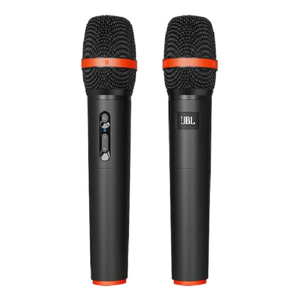 میکروفون بیسیم جی بی ال JBL Wireless Microphone Set به همراه گیرنده ساخت JBL مناسب برای اسپیکر های وایرلس سری پارتی باکس است. این کیت که شامل دو عدد میکروفون بی سیم و یک عدد گیرنده میباشد ساخت کمپانی JBL است و مخصوص به اسپیکر جی بی ال سری پارتی باکس طراحی و تولید شده است . شارژدهی بالا , پایدارای ارتباط فرستنده و گیرنده و انتقال صدا با کیفیت صدای حرفه ایی از جمله محاسن این میکروفون های وایرلس است . اگر جز کاربرانی هستید که به کارائوکه علاقه دارید، این میکروفون میتواند در جاده و هنگام ماشینسواری، ابزاری سرگرمکننده برای شما باشد. از دیگر قابلیتهای خوب این میکروفون میتوان به باند فرکانس UHF و فرکانس فوقالعاده بالای آن اشاره کرد. میکروفونهای JBL Wireless UHF Microphone 300، صدای واقعی Orginal JBL Pro Sound ارائه میدهند که کیفیتی باورنکردنی دارند. در این محصول، نسبت سیگنال به نویز برابر با 90 دسیبل است که کیفیت صدای بالا و صدایی واضح و شفاف را تضمین میکند. وضوح و کیفیت صدا در این میکروفون عالی بوده و همچنین تأخیر آن نیز بسیار کم است. همچنین نویزی در صدا وجود نداشته و صدا با نهایت کیفیت و وضوح پخش میشود. در کل کیفیت صدای این محصول میتواند رضایت هر کاربری را به خود جلب کند. اجرای انفرادی خود را با تبدیل به پخش 2 نفره ، به یک نمایش واقعی صحنه افزایش دهید. دو میکروفون بی سیم را به طور همزمان وصل کنید و هر دو صدا به طور کامل از اسپیکر با زمان پخش حداکثر 6 ساعت مداوم به صدا در می آیند. میکروفون ها با باتری قابل تعویض AA عرضه می شوند. میکروفونهای بیسیم jbl دارای باتریهای AA هستند که به سادی قابل تعویض هستند، بنابراین نمایش میتواند در تمام شبانه روز به صورت پیوسته ادامه داشته باشد.