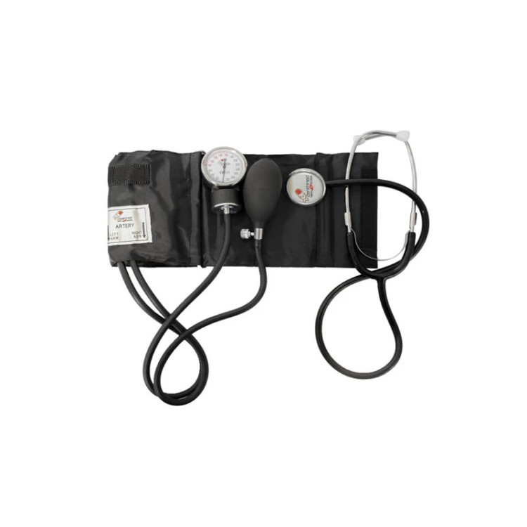 فشارسنج بازویی عقربهای برند زنیت مد مدل ZTH-5001، به همراه گوشی طبی مدل ZTH-5001، پوار و گیج، کاف دو شلنگ PVC بزرگسال، دریچه خروج هوای فنردار، کیف حمل