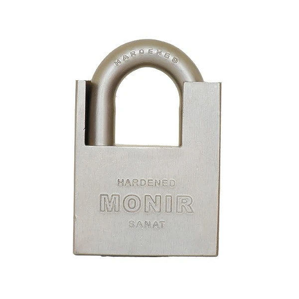 قفل آویز منیر صنعت از جنس فولاد سخت و ضد برش می باشد . دو طرف قفل مانند یک حفاظ فولادی بالا آمده تا فضا را برای میله و دیلم و ابزار قفل باز کنی تنگ تر کند . توپی قفل دارای دو ردیف ساچمه بندی ویژه که مانع از ورود کلید های متفرقه به آن می شود . در دو طرف میله ی قفل ساچمه ی فولادی قرار دارد که مانع از دیلم کردن و شکستن قفل در برابر فشار خارجی می شود . این قفل دارای 4 کلید ویژه دوشیار پله می باشد .