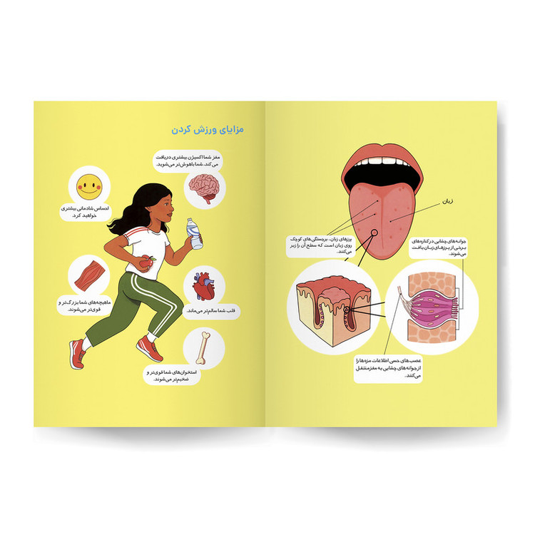همه چیز درباره بدن تو ضربان قلبت را احساس کن! چگونه میشنوی؟ چگونه بو میکشی؟ چگونه مزهها را میچشی؟ ریهها و تنفس تو سلول های ریزه میزه تو چگونه میبینی؟ چگونه لمس و احساس میکنی؟ سیستم گوارش تو عضلات فوقالعاده قدرتمند تو پوست، مو و ناخن های تو مغز و سیستم عصبی تو قوی مان مناسب گروه سنی 5 تا 11 سال معرفی کودک یار: گروه آموزشی کودکیار سعی بر این دارد کـلیه مفــاهیم آمـوزشی مــورد نیاز کـودکـان را با بروزترین روشهای آموزشی، جذابترین طـراحیهای داخلی و بیرونی و همچـنین تـلـفیق آمـوزش و سـرگرمی که باعث افزایش انگیـزهی یادگیری کودک و ارتباط وی با کتاب میشود را به والدین محترم ارائه کند. کتابهای کودکیار، علاوه بر اینکه به عنوان مکمل کتـابهای درسی مـحـسوب میشوند این قابلیت را دارند که بصورت مستقل به عنوان کتاب مرجع برای آموزش مفاهیـم پایه برای کودکان مورد استفاده قرار گیرند.