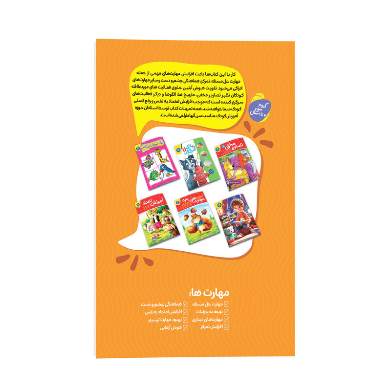 دیدن محصولات مرتبطکار با این کتابها باعث افزایش مهارت های مهمی از جمله مهارت حل مسئله، تمرکز، هماهنگی چشم و دست و سایر مهارت های ادراکی می شود. تقویت هوش آبتین حاوی فعالیت های مورد علاقه کودکان نظیر تصاویر مخفی، مارپیچ ها، الگوها و دیگر فعالیت های سرگرم کننده است که موجب افزایش اعتماد به نفس و رفع کسلی کودک شما خواهد شد. همه تمرینات کتاب توسط استادان حوزه آموزش کودک، مناسب سن آنها طراحی شده است.