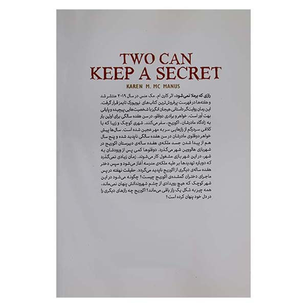 رازی که برملا نمی شود، اثر کارن ام. مک منس در سال 2019 منتشر شد و هفته ها در فهرست پرفروش ترین کتاب های نیویورک تایمز قرار گرفت. این رمان روایتگر داستانی هیجان انگیز با شخصیت هایی پیچیده و پایانی بهت آور است. خواهر و برادری دوقلو، در سن هفده سالگی برای اولین بار به زادگاه مادرشان، اکوریج، سفر می کنند. شهری کوچک و زیبا که با کلافی سردرگم از رازهایی سربه مهر عجین شده است. سال ها پیش خواهر دوقلوی مادرشان در سن هفده سالگی ناپدید شده و پنج سال هم از پیدا شدن جسد ملکه ی هفده ساله ی دبیرستان اکوریج در شهربازی هالووین شهر می گذرد. دوقلوها کمی پس از ورودشان به شهر، در این شهر بازی مشغول کار می شوند. زمان زیادی نمی گذرد که دوباره تهدیدها برعلیه ملکه ی مدرسه آغاز می شود و سپس دختر هفده ساله ی دیگری از اکوریج ناپدید می گردد. حقیقت نهفته در پس ماجرای دختران گمشده ی اکوریج چیست؟ چگونه می شود در این شهر کوچک که هیچ رویدادی از چشم شهروندانش پنهان نمی ماند، همه چیز به شکل یک راز باقی می ماند؟ اکوریج چه رازهای دیگری را در دل خود پنهان کرده است