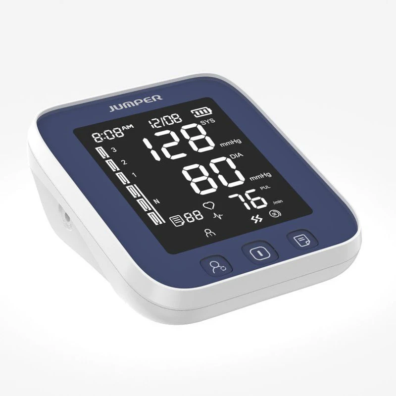 فشارسنج بازویی جامپر مدل JPD-HA101 دارای تاییدیه های پزشکی CE اروپا, FDA امریکا, مدیریت کیفیت تجهیزات پزشکی جهانی MDD93/42/EEC برای دستگاههای پزشکی و مجوز های قانونی زیر نظر اداره تجهیزات پزشکی کل ایران (IMED) است. این دستگاه دیجیتال با دقت بالا در اندازه گیری فشار خون, ضربان قلب و هشدار اریتمی می باشد. این دستگاه دارای 99 حافظه داخلی برای استفاده 2 کاربر به صورت مجزا است و دارای یک مانیتور LCD خیلی بزرگ با قابلیت بَک لایت (روشنایی اعداد در محیط تاریک) است و فشارخون را به شکل دیجیتالی در زمان کوتاه و دقت بالا و کاملا خودکار محاسبه میکند. کاف این فشارسنج بازویی، مناسب دور بازو 22 تا 36 سانتیمتر است و در صورتی که بازوبند اشتباه بسته شود دستگاه اخطار میدهد ( قابلیت cuff detection). شما میتوانید فشار ماکزیمم و مینیمم و تعداد ضربان قلب را به صورت جداگانه و میانگین نتایج را در دستگاه مشاهده کنید. منبع انرژی این دستگاه دوگانه از طریق باتری و برق شهری (از طریق کابل MicroUSB) تامین میشود و دارای قابلیت خاموش شدن اتوماتیک در صورت عدم استفاده پس از 30 ثانیه است.