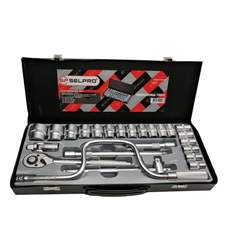 جعبه بکس درایو 1.2 استاندارد شامل 24 پارچه ، چیدمانی است که اکثر قریب به اتفاق سازنده ها یک مدل از آن را دارند و عمومی ترین نمونه جعبه بکس محسوب می شود . گستره سایز در این نمونه از جعبه بکس ها 10 تا 32 میلی متر و در نمونه های 6 پر و 12 پر ساخته می شوند . آلیاژ ساخت کروم وانادیوم و مناسب برای کاربردهای تعمیراتی ، مکانیک ، و کلیه فعالیت های صنعتی می باشد . در کلیه برندها این نمونه بکس ها صرفا برای باز و بست به صورت دستی و بدون ضربه هستند . برند سل پرو تایوان به عنوان یکی از قدیمی ترین سازنده های ابزارآلات در خاک کشور تایوان محصولات خود را با کیفیتی بی تظیر عرضه نموده است . مدل 74524 از محصولات این کمپانی تایوانی می باشد که از 18 بکس 6 پر با درایو 1.2 در سایزهای 10 تا 32 میلی متر تشکیل شده است . آچار بکس جغجغه ای با کلید چپ و راست ، رابط های بلند و کوتاه و آچار هندلی از دیگر محتویات این محصول آلمانی می باشد که همگی در جعبه ای فلزی بسیار مقاوم و خوش ساخت قرار گرفته اند .