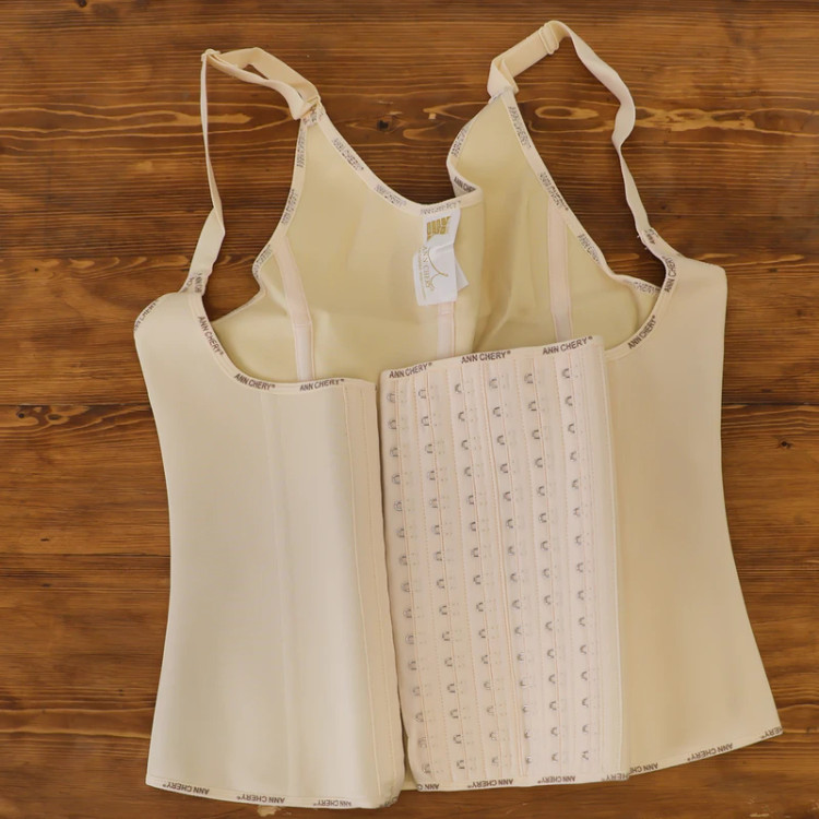 شامل سه لایه که لایه مرکزی لاتکس است و لایه های بیرونی کتان هستند دارای 6 ردیف قزن جهت تنظیم سایز و دارای 9 فنر استیل برای جلوگیری از لول شدن و تغییر فرم بدن به ساعت شنی است که ارتفاع جلوی گن 30 سانتیمتر از سطح شکم را می پوشاند