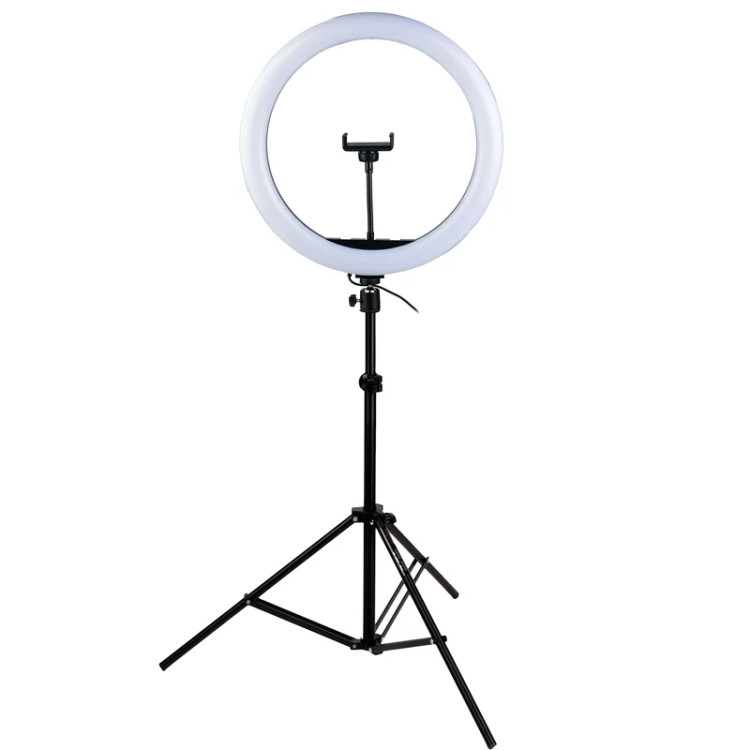 رینگ لایت FRL-36 R با قطر 36 سانتی متردارای رنگ های آفتابی ، مناسب عکاسی پرتره و مدلینگ ، ولاگینگ و گیمینگ است. این رینگ لایت پایه دار علاوه بر دسته هنرمندان، مورد توجه سالنهای آرایشی و کوتاهی مو است. شما با این منبع نوری با یک تیر دو نشان خواهید زد. علاوه بر فراهم کردن نور کار با دقت بالا، میتوانید از مشتریان خود برای شبکه اجتماعی سالنتان تصاویر با کیفیتی را ثبت کنید. نور بالای این رینگ لایت قیمت مناسب اثر قابل توجهی در کیفیتِ تصویر دارد که هم مخاطبان و هم هوش مصنوعی شبکههای اجتماعی را خوشحال خواهد کرد. همانطور که اشاره شد میتوان از ازین رینگ لایت با قیمت اقتصادی برای فراهم کردن نور به منظور انجامِ کارهای ظریف بهرهمند شد. از مهم ترین قابلیت های این رینگ لایت حرفه ای که قابل استفاده در سالن و آرایشگاه نیز می باشد می توان به تنظیم رنگ نور در 3 حالت آفتابی مهتابی و ترکیبی آن اشاره کرد. رینگ لایت سالنی FRL-36 R از طریق پورت یو اس بی برای راه اندازی دستگاه استفاده میکند. این رینگ لایت قادر است با ایجاد روشنایی قوی تصاویر مناسبی در محیط های کم نور ایجاد کنند.تنظیمات این رینگ لایت پایه دار از طریق ریموت سیمی انجام می گردد.این کنترلر دارای دکمه ی روشن خاموش،دکمه ی Mode (تنظیم حالت انتخابی رنگ)،دکمه ی کم و زیاد کردن قدرت خروجی از 0 تا 100% است.دمای رنگ ها نیز در 3200 الی 6500 کلوین فعالیت می کنند و آزادی عمل کافی برای انتخاب طیف مناسب را به کاربران خواهند داد. همراه این رینگ لایت حرفه ای 1 عدد هولدر موبایل قابل انعطاف و یک عدد سه پایه به ارتفاع دو متر و ده سانتی متر و کیسه حمل آن ارائه می گردد. این دستگاه قدرت بسیار قوی برای شما فراهم می کند که باعث می شود در تمام کاربردهای مختلف مثل استفاده در سالن آرایشگاه، بلاگری، ناخن کاری ، استریم و گیمینگ و فیلم برداری عملکرد بسیار قابل قبولی ارایه کند. رینگ لایت عکاسیFRL36 بجز کاربرد عکاسی برای فیلم برداری نیز قابل استفاده می باشد، همچنین این رینگ لایت حرفه ای علاوه بر اینکه با دوربین های حرفه ای و بدون آینه قابل استفاده است ، رینگ لایتی مناسب گوشی هوشمند و آیفون نیز می باشد.