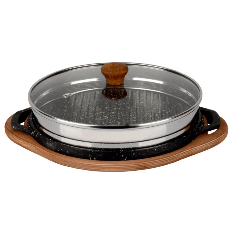 تابهی گریل مکنوس سایز 26 یک تابهی چدنی با روکش گرانیتی بوده که برای آمادهکردن یک وعده غذای سالم بهترین گزینه است. این تابه سطحی شیاردار دارد که در حین پخت باعث میشود خطوطی زیبا و تیره روی مواد غذایی ایجاد شود. برای استفاده از این تابه گریل کافی است آن را روی حرارت قرار دهید و بعد از اینکه کاملا داغ شد، مواد غذایی را داخل آن بچینید. از مهمترین ویژگیهای این ظروف میتوان به نیاز کم به حرارت و لعاب حساسشان اشاره کرد. به همین دلیل است که توصیه میکنیم برای استفاده از ظروف چدنی، خصوصا این تابه، از کفگیر و قاشقهای چوبی یا پلاستیکی استفاده کنید. قاشقهای فلزی ممکن است به تابه صدمه بزنند. این نکته هم باید بگوییم که برای شستن این تابه کمی صبور باشید و بلافاصله بعد از پخت، آن را داخل آب سرد قرار ندهید. میتوان داخل این تابه انواع کتلت و کوکو، فیلهی مرغ، ماهی، استیک را چنان مغزپخت کرد که شاید طعم آنها بسیار لذیذتر از روش پخت با روغن باشد. این تابه گریل مکنوس دو رو میباشد در واقع یک رو به صورت شیار دار و یک روی ان هم صاف است و بر اساس نیاز خود میتوانید از هر طرف تابه استفاده کنید همراه تابه یک عدد سینی چوبی گیاهی جهت سرو غذا نیز ارائه میشود که بر حسب نیاز هم میتوانید به صورت جداگانه از سینی استفاده کنید هم میتوانید به همراه تابه گریل برای زیر تابه استفاده نمایید.