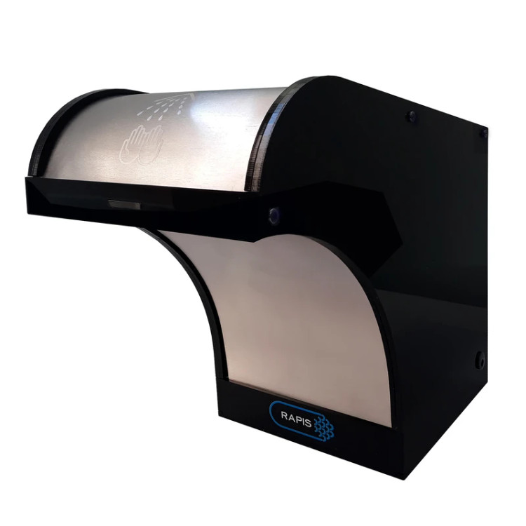 با توجه به افزایش آلاینده ها و همچنین گسترش بیماری های مسری، امروزه ضدعفونی کردن وسایل و دست ها امری ضروری است. دستها عامل مهمی در سرایت و انتقال بیماری ها و آلودگی هستند، لذا استفاده از یک شیوه ی غیرتماسی برای پاکسازی و ضد عفونی کردن دستها بسیار کاربردی و مفید خواهد بود. دستگاه ضدعفونی کننده RAPIS به منظور کمک به کنترل و جلوگیری از انتقال آلودگی از طریق دست ساخته شده است. از ویژگیهای منحصر به فرد این محصول می توان به قابل تنظیم بودن میزان خروجی اسپری، استفاده از سنسور غیر تماسی التراسونیک و ظاهری شیک و جذاب اشاره نمود. این دستگاه قابلیت نصب به سه صورت رومیزی، دیواری و ایستاده را دارد. دستگاه RAPIS دارای کارایی ساده و ظاهری شیک، مناسب برای استفاده در مکان های اداری و عمومی است.